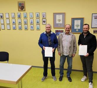Das Foto zeigt (von links nach rechts): Johannes Wirtz, Hans-Joachim Conrad und Marius Mees mit ihren Ehrenurkunden.