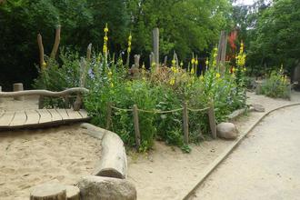 So kann eine „Wilde Ecke“ in die bestehende Außenanlage einer Kita integriert werden. Foto: Antje Schwabersberger.