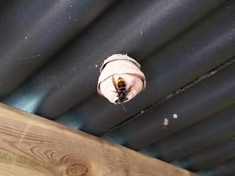 Beobachten Sie am Haus und im Garten aufmerksam, ob Sie asiatische Hornissen sehen, die immer die gleiche Stelle ansteuern! Wenn ja, schauen Sie aufmerksam, ob sich dort ein Nest befindet.