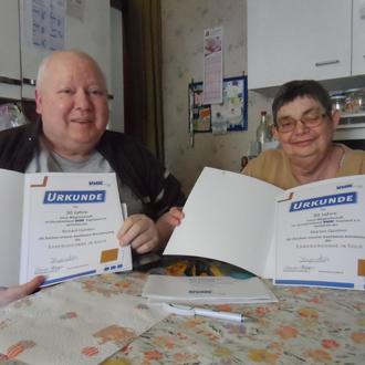 Für 30-jährige Mitgliedschaft wurde das Ehepaar Marion und Richard Quinten vom Vorstand des VdK Ortsverbandes Nalbach mit einer Ehrenurkunde und entsprechender Ehrennadel geehrt.