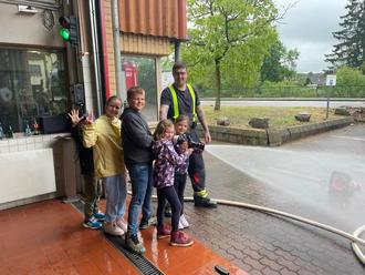 Die Offene Ganztagsschule startete die Ferienbetreuung diesmal mit einem tollen Erlebnistag bei der Feuerwehr Nalbach. Trotz der langen Einsätze am Wochenende zuvor und des bevorstehenden Feuerwehrfestes ließen es sich die Feuerwehrmänner nicht nehmen, den Kindern ein tolles Programm anzubieten. Beim Schlauch aufrollen, der Benutzung der Wärmebildkamera und der Funkgeräte, aber auch beim Vorstellen der Drohne waren die Schülerinnen und Schüler hell auf begeistert. Natürlich durfte auch das Spritzen mit dem Wasserschlauch nicht fehlen. Ein herzliches Dankeschön an Benedikt Staudt und dem ganzen Team der Feuerwehr Nalbach.