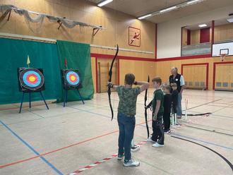Ein großes Dankeschön gilt auch Günther Weber und den Trainern der Bogensportfreunde Litermont e.V., die den Schülerinnen und Schülern ein tolles Schnuppertraining in der Litermonthalle anboten. Nach einer ausführlichen Einführung mit vielen Tipps, konnten die Kinder die Sportart ausprobieren und auf Luftballons zielen, was allen riesigen Spaß bereitete. Zum Abschluss wurde noch ein kleines Turnier gehalten.