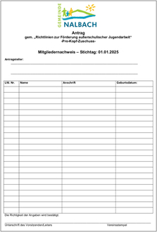 2. Zum Nachweis der Zahl der Jugendlichen ist dem Antrag eine namentliche Auflistung aller Jugendlichen