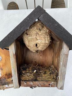 Diese sind Tennisball- bis Handball groß, papierartig und befinden sich häufig in geschützten Bereichen wie Garagen, Schuppen, Rollladenkästen oder unter Dachvorsprüngen.