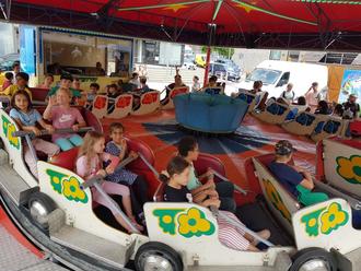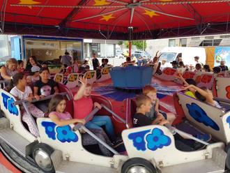 Auch die Kinder der Offenen Ganztagsschule besuchten am Dienstagnachmittag den Peter und Paul Markt und hatten riesigen Spaß auf der Berg- und Talbahn.