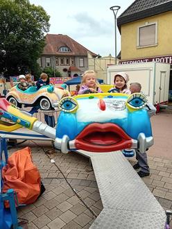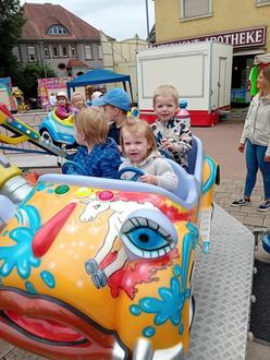 Dank unserem Ortsvorsteher Albert Steinmetz hatte dies extra für uns früher aufgemacht. Bei der Fahrt auf dem Karussell, war der Regenschauer schnell wieder vergessen und die Kinder hatten viel Spaß.