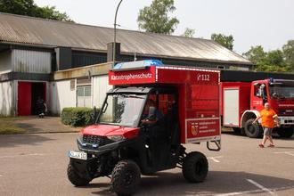 Die Zusammenarbeit der beiden Fachzüge aus dem LK Saarlouis und aus dem LK Bernkastel-Wittlich funktionierte reibungslos Hand in Hand. So wurde mit dem Schlauchwagen des Fachzuges von der Mosel ein großer Teil der Löschwasserleitung verlegt. Die beiden anderen Löschfahrzeuge aus Kinheim-Kindel „bekämpften“ mit den saarländischen Kameradinnen und Kameraden Schulter an Schulter den Brand im Bereich des Falkenweges. Dass vor einigen Wochen in Dienst gestellte ATV-Fahrzeug des Landkreises Bernkastel-Wittlich, ein kleines hochgeländegängiges Arbeitsfahrzeug für den Geländeeinsatz mit Allradantrieb, diente den Einsatzkräften vor Ort als Erkundungs- und Transportfahrzeug.