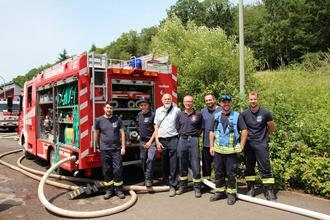 Der Nalbacher Bürgermeister Peter Lehnert dankte allen Teilnehmerinnen und Teilnehmern für ihre Leistung. Es wurde heute eindrucksvoll gezeigt, welche Auswirkungen ein kleiner Wiesen- oder Feldbrand haben kann. Er erinnerte an einen Vortrag von Sabine Kerber beim Delegiertentag des Kreisfeuerwehrverbandes im April zum Thema Vegetationsbrandbekämpfung. Dieser Vortrag bewege ihn persönlich immer noch im Nachgang sehr, da dieser die auf uns zukommenden Probleme und Auswirkungen des Klimawandels verdeutlichte. Er habe aus diesem Grund den Verantwortlichen beim saarländischen Städte- und Gemeindetag (SSGT) vorgeschlagen, dass sie sich diesen Vortrag anhören sollen. Den Übungsteilnehmern von der Mosel dankte er für die Teilnahme an der Übung und hob die jahrzehntelange Freundschaft der Feuerwehren aus Nalbach und Kinheim-Kindel hervor.