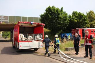 Resümee war, dass die Einsatzkräfte es innerhalb einer Stunde schafften, eine fast 2 km lange Löschwasserversorgung von der Wasserentnahmestelle aus der Prims in der Hüttersdorferstraße bis weit hinter die „Villa Kunterbunt“ in Richtung Hüttersdorf herzustellen. Es hat sich gezeigt, dass mehrere Pumpen in die Löschwasserleitung eingebaut werden müssen, um das Löschwasser über diese lange ansteigende Wegestrecke in der Homrichstraße hochzupumpen.