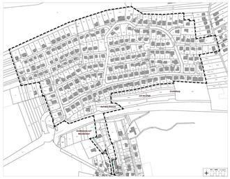 Übersichtskarte mit dem Geltungsbereich des Bebauungsplans, genordet, ohne Maßstab