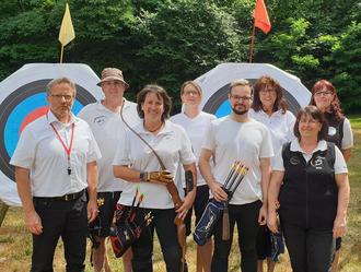 Am Sonntag, den 02. Juli 2023, traten unsere Blankbogenschützen erfolgreich bei der Landesmeisterschaft WA im Freien in Lisdorf an. Bei der WA im Freien werden in der Blankbogenklasse die 50-m-Distanz mit jeweils 72 Pfeilen (2 x 36 Pfeile pro Durchgang und jeweils 6 Pfeile pro Passe) auf eine stehende Zielscheibe geschossen. Der gesamte Wertungsbereich der Zielscheibe für Blankbogenschützen umfasst dabei einen Durchmesser von 122 cm. Wenn man die Höchstwertung von "10" Ringen erreichen wollte, musste man die 12,2 cm kleine Trefferfläche im Zentrum der Auflage treffen. Sieben unserer Blankbogenschützen gaben an diesem Sonntag ihr Bestes und erreichten zwei Landesmeister- und zwei Vizelandesmeisterschaftstitel. Unser Vorsitzender Norbert Kleber war bei dieser Landesmeisterschaft wieder als Kampfrichter tätig.