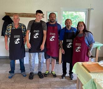 am vergangenen Samstag war es so weit, unser Flammlachsessen fand an unserer Hütte statt. Trotz regnerischem Wetter, fanden sich alle Gäste ein und genossen unseren leckeren Flammlachs uns unseren Wein. Für die Kinder gab es Fischburger. Es war ein sehr gelungener Tag mit vielen netten Gästen, sehr gut zubereitetem Essen, kühlen Getränken und schöner Live Musik von „Steppin Out“. Auf diesem Wege möchten wir uns bei folgenden Helfern bedanken: