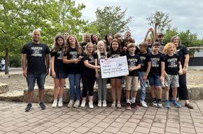 Am letzten Schultag vor den Sommerferien wurde noch ein Foto der gesamten Klasse mit Klassenlehrer Herr Karim Barbar und Co-Klassenlehrerin Frau Mirjam Leinenbach mit dem Spendenscheck gemacht.