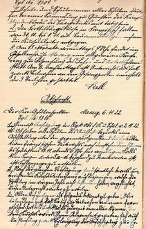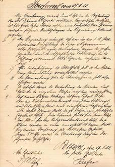 Die Konferenz wurde um 4 Uhr in der Wohnung der Frl. Lehrerin Schmitt eröffnet. Nach erfolgter Vorstellung des für Herrn Lehrer Thewes erschienenen Vertreters Herr Geimer wurden folgende Verfügungen der Regierung bekannt gegeben.
