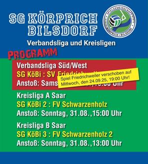 In Bischmisheim hängen die Trauben bekanntlich hoch, aber unser Team pflückte wenigstens eine davon in Form eines Punktes. Das Spiel selbst war eher eine umkämpfte Mittelfeldackerei, keiner gönnte dem jeweiligen Gegner eine absolute Topchance. Ein klassisches 0:0 eben. Damit bleibt unsere Mannschaft ungeschlagen und thront nach vier Spieltagen mit 10 Punkten an der Tabellenspitze. Ob das nur eine Momentaufnahme ist oder bereits ein klarer Fingerzeig, wird das nächste Wochenende zeigen, wenn die SG Köbi auf den Tabellenzweiten aus Friedrichtal trifft. Ein echtes Spitzenspiel, Erster gegen Zweiter, in der frühen Phase der Saison, bei uns am Samstag im Primsstadion. Wir freuen uns drauf - und auf Sie.