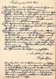 1. Nach der Eröffnung um 4 ¼ Uhr wurde die Lehrplanverfügung vom 8.12.22. No. 1415 bekannt gegeben.