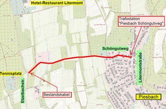 Die Verlegung aller Versorgungsleitungen im Verbindungsweg von Nalbach Richtung Piesbach erfolgt im rechten unbefestigten Bankett und ab der Ortsbebauung in Piesbach im Schöngutweg bis Litermontstraße im rechten Gehweg.