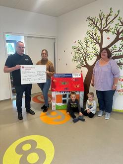Die SAARLAND Versicherungen in Saarbrücken hatten im Rahmen ihrer Wohngebäude-Initiative 2023 saarlandweit einen „Spielhaus & Team-Wettbewerb“ für ihre Agenturen ausgelobt. Es ging um die Gestaltung eines Spielhauses gemeinsam mit Kindergärten. Den fünf kreativsten „Eigenheimen“ winkten jeweils 250,- Euro. Für die Generalagentur Markus Roos AHR GmbH aus Saarwellingen gingen die Kita St. Blasius in Saarwellingen, die Kita St. Michael in Nalbach-Körprich und die Kita St. Peter und Paul in Nalbach ins Rennen. Als einer von fünf Gewinnern des „Spielhaus & Team-Wettbewerbes“ konnte sich die Kita St. Peter und Paul in Nalbach qualifizieren. Am 16.10.2023 fand die Übergabe des Gewinner-Schecks i.H.v. 250,- Euro in der Kita in Nalbach statt.