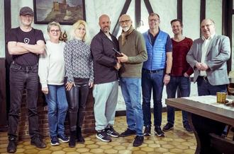 Bürgermeister Peter Lehnert und Ortsvorsteher Albert Steinmetz kamen zur Eröffnung und wünschten viel Erfolg. v.l.n.r. Frank Albrecht, Karin Jost, Nicole Reck, Sebastian Suffel, Bürgermeister Peter Lehnert, 1. Vorsitzender Marco Bach, Carsten Cavelius, Ortsvorsteher Albert Steinmetz