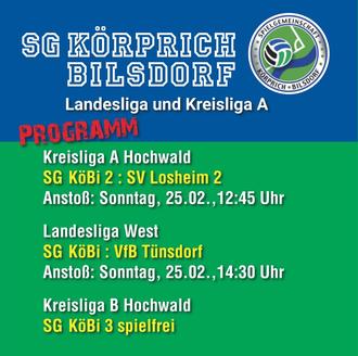 Der Winter ist (fast) vorbei, der Schnee geschmolzen und der Rasen in bestem Zustand. Letzteres hoffen wir zumindest beim Start in die Restrunde nach der Winterpause. Zwei Spiele stehen nach der Vorbereitung auf dem Programm, die spannend zu werden versprechen. Die Zweite empfängt Losheim 2, die Erste spielt gegen den Drittplatzierten aus Tünsdorf. Für das leibliche Wohl ist wie immer bestens gesorgt.