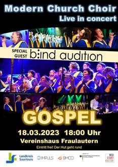 Der MODERN CHURCH CHOIR Nalbach lädt ein zum nächsten Gospelevent am Samstag, 18. März 2023, 18 Uhr, im Vereinshaus Saarlouis Fraulautern.