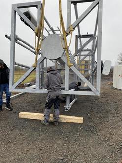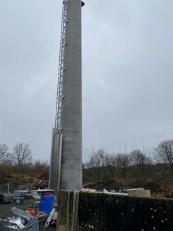 Der Mast hat eine Gesamthöhe von 33,85 m und soll für unsere Gemeinde eine wesentlich bessere Mobilfunknutzung ermöglichen.