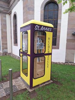 Wo an vielen Orten „Bücherbäume“ entstehen, so steht an der Kirche jetzt eine „Bücherzelle“. Mitglieder und freiwillige Helfer und Helferinnen des Kirchbauvereins St. Anna haben in mühsamer Fleißarbeit die ehemalige Telefonzelle über die Wintermonate zu einer Bücherzelle umgebaut. Die Telefonzelle stand seit den späten 70er Jahren bis Ende der 90er Jahre als öffentlicher Fernsprecher gegenüber der Dorflinde.