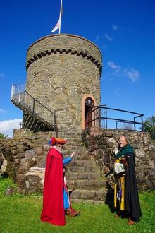 Ihr trefft am Sonntag, 01.06.2025 zur vierten Stunde nach der Mitte des Tages (also 16 Uhr) die beiden Ritter und ehemaligen Miteigentümer am Fuße der Burg auf dem Schlossberg zu Namborn/Eisweiler und taucht mit ihnen ab in die Zeit der Bergschlösser.