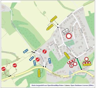 Die Umleitung erfolgt als Einbahnstraße, kommend von der Sankt Wendeler Straße über die Straße „Zur Göckelmühle“. Die Abfahrt aus dem Wohngebiet erfolgt daher über den Feldwirtschaftsweg in Verlängerung der Trierer Straße. Ab Einmündungsbereich „Zur Göckelmühle“ ist der Weg als Einbahnstraße beschildert.