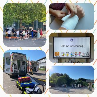 Das Team der Rettungswache des Deutschen Roten Kreuzes rund um Kevin Schmitt gab den Kindern einen interessanten Einblick in die Arbeit eines Rettungsdienstes. Dazu gehörte auch, dass sich die Jungen und Mädchen einen der drei Rettungswagen, die an diesem Tag auf dem Schulhof standen, unter der fachkundigen Betreuung näher ansahen.