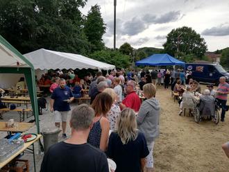Knapp 110 Teilnehmer beim 1. Namborner Gudd-Zweck Grillen verbrachten einen sehr schönen Sommerabend bei leckerem Essen und viel „Gesproche“.