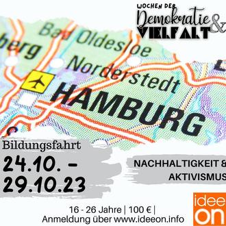 Ihr wollt in den Herbstferien etwas Besonderes erleben und ganz nebenbei noch etwas lernen? Dann seid ihr bei unserer Bildungsfahrt genau richtig. In diesem Jahr fahren wir mit euch ins schöne Hamburg und setzen uns mit den Themen Nachhaltigkeit und Aktivismus auseinander. Dazu haben wir bereits spannende Programmpunkte wie der Besuch einer Ausstellung von Greenpeace oder ein Upcycling Workshop geplant. Außerdem setzen wir uns mit Vertreter*innen von Greenpeace und Fridays for Future zusammen, besprechen die Wichtigkeit und Möglichkeiten von Nachhaltigkeit, Umweltschutz, Aktivismus und politischer Beteiligung.