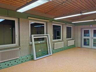 Alle Fensteranlagen der Turnhalle, des anliegenden Speisesaales und verschiedene Eingangstüren werden erneuert. Eine ortsansässige Firma in der Gemeinde Namborn ist mit der Ausführung der Maßnahme beauftragt.