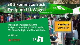 Am 16. August ist SR 3 mit dem "Treffpunkt Ü-Wagen" zu Gast im Eisweiler. Den ganzen Tag lang berichten die beiden Ü-Wagen-Reporter aus dem malerischen Ort im Nordsaarland. Und natürlich wird wieder gefeiert - mit Essen und Trinken frei Haus.