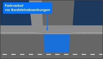 Vor Bordsteinabsenkungen ist Parken nicht zulässig (§ 12 Absatz 3 Nummer 5 StVO).