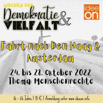 In den Herbstferien nehmen wir euch mit in die Niederlande. Dort werden wir uns mit dem Thema „Menschenrechte und Menschenrechtsverletzungen“ befassen. Während der Fahrt werden wir uns mit globalen, vergangenen und aktuellen Menschenrechtsverletzungen beschäftigen. Dazu steht unter anderem ein Besuch des Internationalen Strafgerichtshof in Den Haag und ein Tagesausflug nach Amsterdam auf dem Programm.