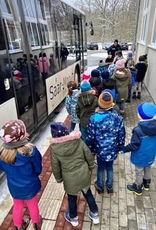 Am 24. Januar führte POK Wolfgang Gläser, Verkehrssicherheitsberater an der Jugendverkehrsschule St. Wendel, mit rund 60 Kindern der ersten Klassenstufe der Marienschule Namborn wieder eine Busschule durch. Nach einer theoretischen Einweisung im Klassenraum wurden dann die erworbenen Inhalte an der Bushaltestelle, im unmittelbaren Umfeld des Busses und im Innern des Fahrzeugs von den Schülern in die Praxis umgesetzt. Die Firma Lay Reisen aus Püttlingen stellte dazu wie schon in den Vorjahren wieder einen Bus von Saar-Mobil zur Verfügung. Die praktischen Übungen beinhalteten beispielsweise das richtige Verhalten beim An- und Abfahren des Busses, beim Ein- und Austeigen oder während der Fahrt. Darüber hinaus ging POK Gläser auf im Bus vorhandene Gegenstände für Notfälle ein und erläuterte abschließend den sogenannten Toten Winkel. An der Tradition dieser jährlichen Veranstaltung will man auch zukünftig gemeinsam weiter festhalten, damit unsere Kinder mit dem Bus sicher unterwegs sind.