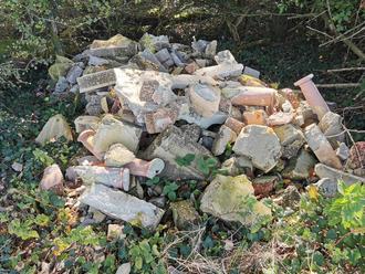 Offensichtlich bereits Anfang August 2023 wurde auf einem Privatgrundstück in der Gemarkung "An der Roschbergergrenze" eine nicht unerhebliche Menge an Bauabfällen illegal entsorgt.