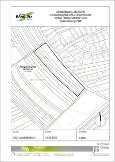 Weiterhin wird bekannt gemacht, dass der Bebauungsplan „Trierer Straße“ sowie die Teiländerung des FNP mit frühzeitiger Beteiligung der Öffentlichkeit gem. § 3 Abs. 1 erfolgt. Die Entwürfe des Bebauungsplanes „Trierer Straße“ und der Teiländerung des Flächennutzungsplanes bestehend jeweils aus der Planzeichnung mit textlichen Festsetzungen und der Begründung werden in der Zeit