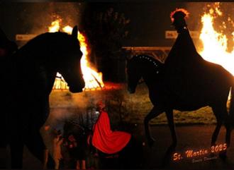 Viele Kinder mit ihren Laternen, so startete die Feier um diesen besonderen Tag in unserer Pfarrkirche. Nach einer kurzen St.Martins-Geschichte, vorgetragen von der Gruppe Wackelzähne der Kita Villa Kuntebunt, ging es unter der musikalischen Begleitung des Musikvereins Baltersweiler sowie den Fackelträgern der Freiwilligen Feuerwehr Namborn von der Kirche zum Kirmesplatz. Allen voran, hoch auf dem Ross, unsere St. Martina Britta Klein. Dort wurde von der Feuerwehr das Martinsfeuer entzündet, das bei vielen Kindern für leuchtende Augen sorgte.