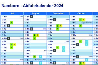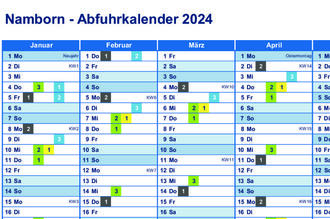 Die Abfuhrtage für die Restabfall- und Biotonne bleiben in Namborn in 2024 unverändert gegenüber 2023. Die Abfuhrtermine können auf der Internetseite des EVS eingesehen und heruntergeladen werden. Der adressgenaue Online-Abfuhrkalender bietet Wochen-, Monats- und Jahresübersichten sowie eine praktische E-Mail-Erinnerungsfunktion. Aufgrund der hohen und stetig steigenden Akzeptanz des Online-Angebots und um als Umweltverband Ressourcen zu sparen, verteilt der EVS keine gedruckten Abfuhrkalender mehr.