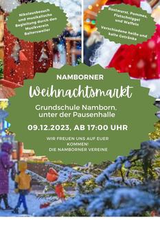 In diesem Jahr findet der Namborner Weihnachtsmarkt im Bereich der Grundschule in Namborn statt. Wettergeschützt wird er überwiegend unter der überdachten Pausenhalle stattfinden.