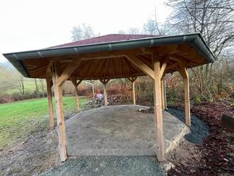 Unser Freizeitzentrum Scheib wird immer attraktiver zum Feiern in den Sommermonaten. In den Tagen konnte die Fläche unter dem gelungenen Rund - Pavillon mit Pflastersteinen befestigt werden. Was fehlt sind Toilette, Wasser- und Stromanschluss. Dies könnte auch vorerst noch so bleiben. Ins Investitionsprogramm der kommenden Jahre ist dies allerdings aufgenommen worden.