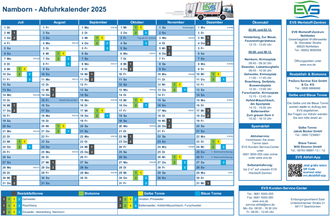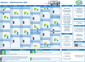 Aktuelle Informationen zu den Abfuhrterminen, einschließlich aller Feiertagsregelungen, sind jederzeit auf der Website www.evs.de/abfuhrtermine oder in der kostenfreien EVS Abfall-App verfügbar, die in den App-Stores heruntergeladen werden kann.