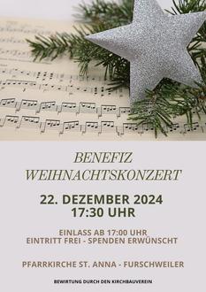 Datum: Sonntag, 22. Dezember 2024 um 17:30 Uhr (Einlass ab 17:00 Uhr) in der Pfarrkirche St. Anna, Furschweiler.
