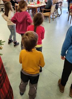 In weihnachtlicher Atmosphäre verteilten die Kinder die Karten, es wurden gemeinsam Weihnachtslieder gesungen und dank der herzlichen Verpflegung des Altenhilfezentrums zusammen kleine Leckereien gegessen. Die Kinder zeigten sich sehr neugierig und durften sogar die Zimmer der Bewohner und Bewohnerinnen begutachten.