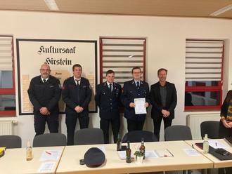 Im Löschbezirk Hirstein konnte der stellvertretende Löschbezirksführer Tobias Zuschlag zum Brandmeister befördert werden.