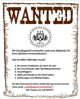 Vielleicht erinnert sich der eine oder andere noch... 2013 haben wir die Straußjugend neu gegründet, da dieses Brauchtum bei der Jugend in Vergessenheit geraten war. Seither sorgt die Dorfjugend für gute Laune an der Kirmes, sind übers ganze Jahr eine eingeschworene Truppe mit ca. 20 Mitgliedern und engagiert sich im Dorf bei Grünschnitt- und Reinigungsarbeiten. Damit es auch künftig weiter geht, wurde ich gebeten, die Werbung für die jüngeren Generationen zu unterstützen... Daher nachfolgender Aufruf an alle Jugendlichen ab 16 Jahren... Apropos: Die Mädels und Jungs planen schon für die Kirmes.