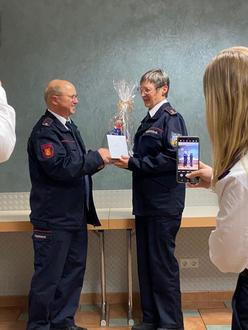 Anschließend wurde die Feuerwehranwärterin Jasmina Schneider zur Feuerwehrfrau befördert.