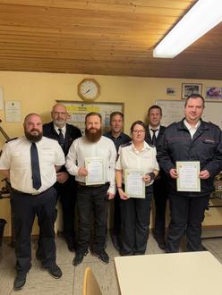 Des Weiteren wurden Moritz Steil und Manuel Bintriem zum Oberfeuerwehrmann, Joshua Koster und Lukas Dillinger zum Löschmeister und Thorsten Lehberger zum Hauptlöschmeister befördert.